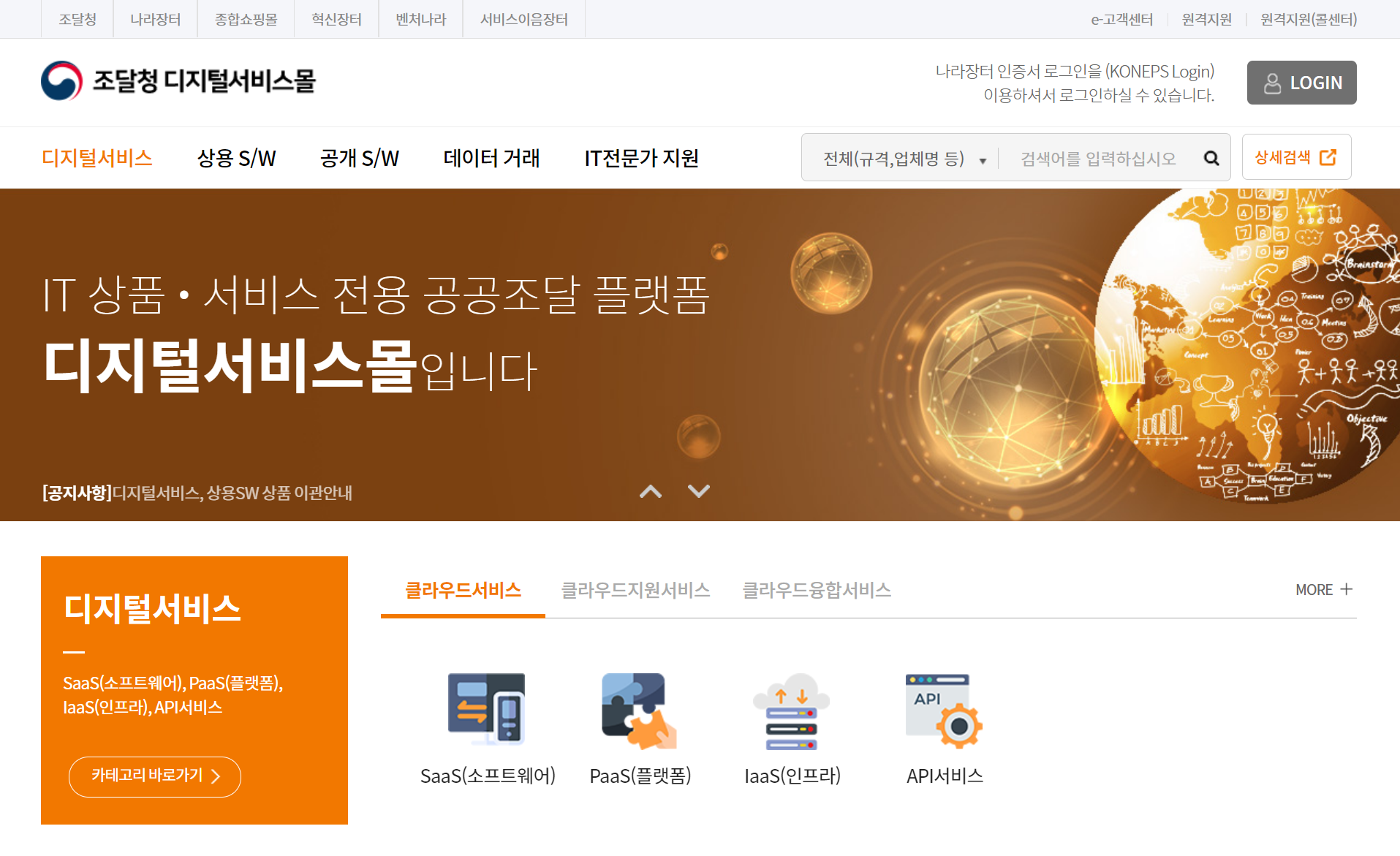 디지털서비스몰은 조달청이 4월부터 새롭게 운영하는 공공조달 플랫폼입니다.