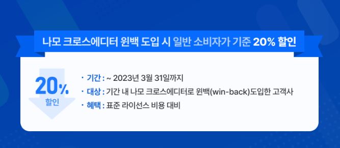 그 기준을 모두 만족하는 나모 크로스에디터로 변경하시면 일반 소비자가 기준 20% 할인된 가격에 만나보실 수 있답니다.