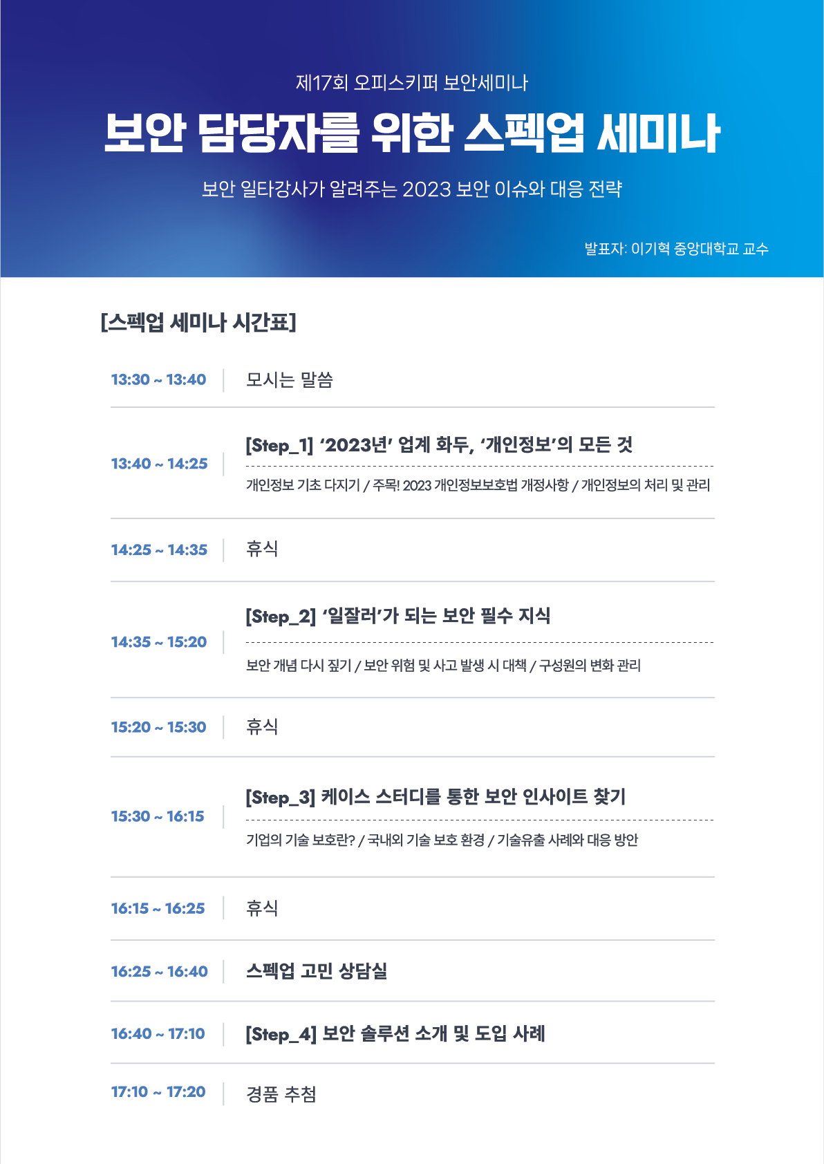 총 3강의 강의와 함께, 보안 업무에 대한 고민을 현장에서 바로 해결해드리는 ‘스펙업 고민 상담실’과