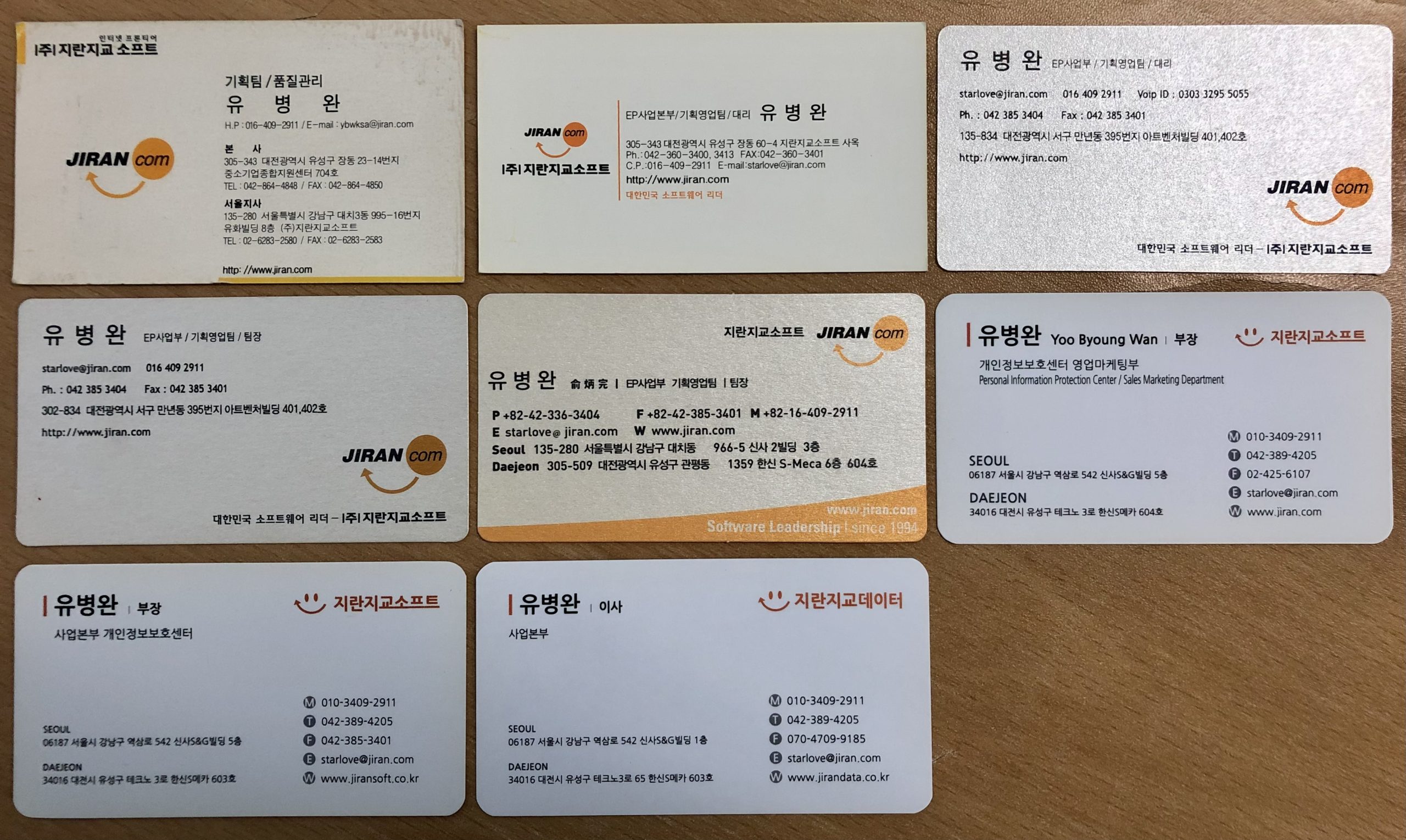 기획업무 -> 대전지역 SI사업(대덕밸리사업부) -> 시장 및 규모가 확장된 SI 사업(EP사업부 초기) -> 솔루션 사업부 전환(EP사업부 후기) -> 개인정보보호 전문 사업부(개인정보보호센터) -> 분사(지란지교데이터)