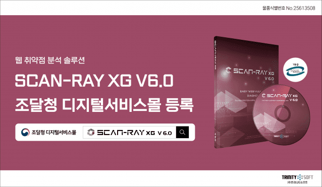 애플리케이션 보안 전문기업 트리니티소프트(대표 김진수)는 자사의 웹 취약점 분석 솔루션 ‘스캔레이 엑스지(SCAN-RAY XG) V6.0’이 조달청 디지털서비스몰에 정식 등록됐다고 12일 밝혔다. 이에 따라 공공기관 및 지자체는 별도 입찰 절차 없이 ‘SCAN-RAY XG V6.0’을 보다 간편하게 도입할 수 있게 됐다.