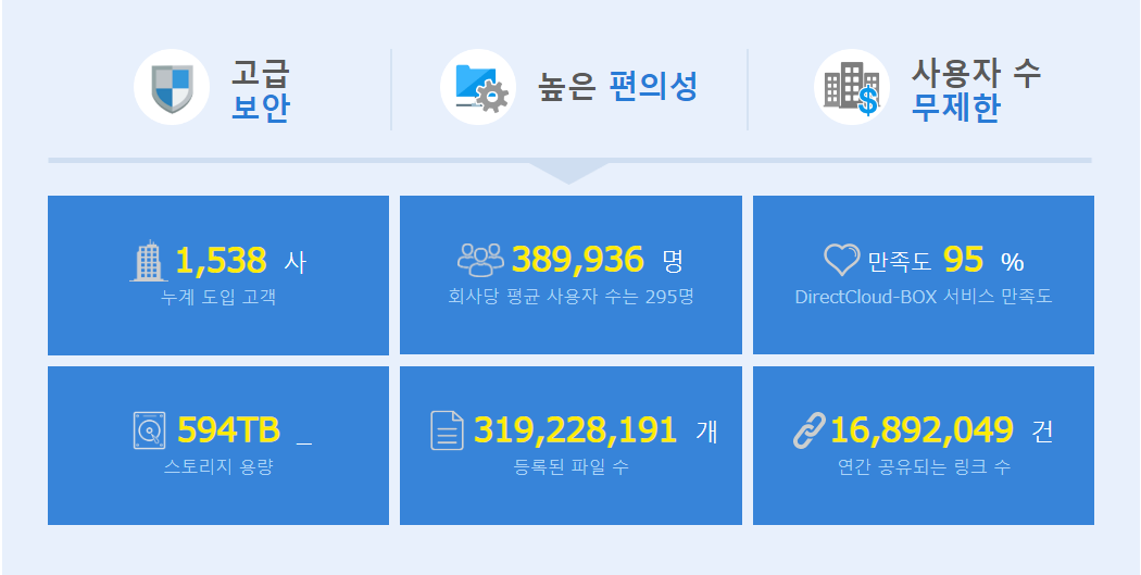 파일서버 수준의 보안과 권한관리 기능을 갖춘 Direct Cloud-Box 서비스로 일본 기업용 클라우드스토리지 시장에서 괄목할 만한 성장을 보여주고 있습니다.