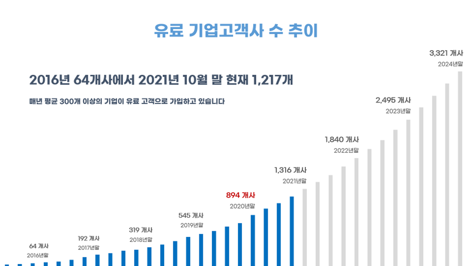 그 결과 큰 금액은 아니었지만 2019년 지란지교 계열사로는 처음으로 프라이머사제파트너스로부터 프리시리즈A 투자를 유치하였고, 한해 동안 더 성장해 2020년, 20억원의 시리즈A 후속 투자 유치를 완료하였습니다. 그리고, 지난 4월 21일 팍샤테크놀러지의 입금을 끝으로 구주 포함 80억원의 프리시리즈B 라운드의 투자유치까지 성공적으로 마무리하였습니다.