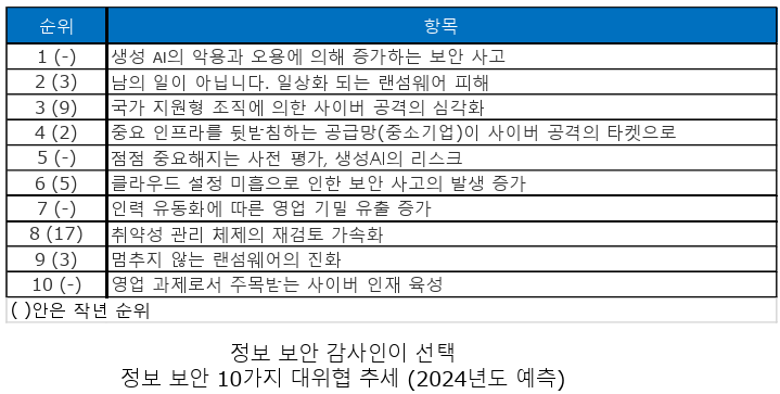 - 정보 보안 10가지 대위협 추세 2024년도 예측