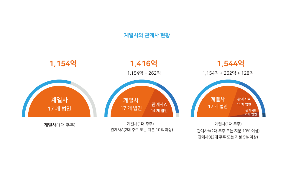 지란지교패밀리는 홀딩컴퍼니 (국내외 관리회사) 를 제외하고 사업법인이 계열사 17개 관계사 16개 포함 총 33개 법인으로 구성되어 있습니다. 계열사와 관계사의 매출분석을 해보았고, 성장 단계에 따라