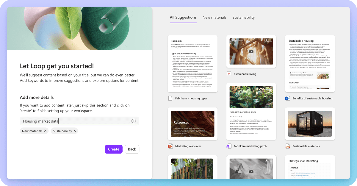 루프 컴포넌트는 다양한 플랫폼에서 걸쳐 동기화돼 실시간 공동 작업을 지원한다. 루프 페이지는 루프 앱에서 사람, 구성 요소, 링크, 작업 및 데이터를 한데 모으는 캔버스 역할을 한다. 페이지는 확장 가능한 구조다. 루프 워크스페이스는 프로젝트 세부 정보를 체계적으로 볼 수 있는 보기를 제공해 진행 상황 추적을 간소화할 수 있도록 지원한다.